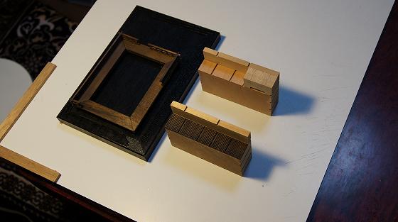 手前のが初層壁、後ろのが二層壁で後で黄金色を塗る。